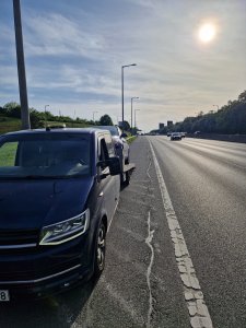 M6-on bal pályán 27-es kilométerkőnél műszaki hiba miatt félreállt ez az autó. Utánfutóval együtt elszállítottuk Budakeszire.
